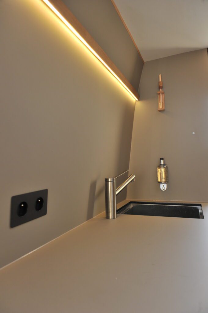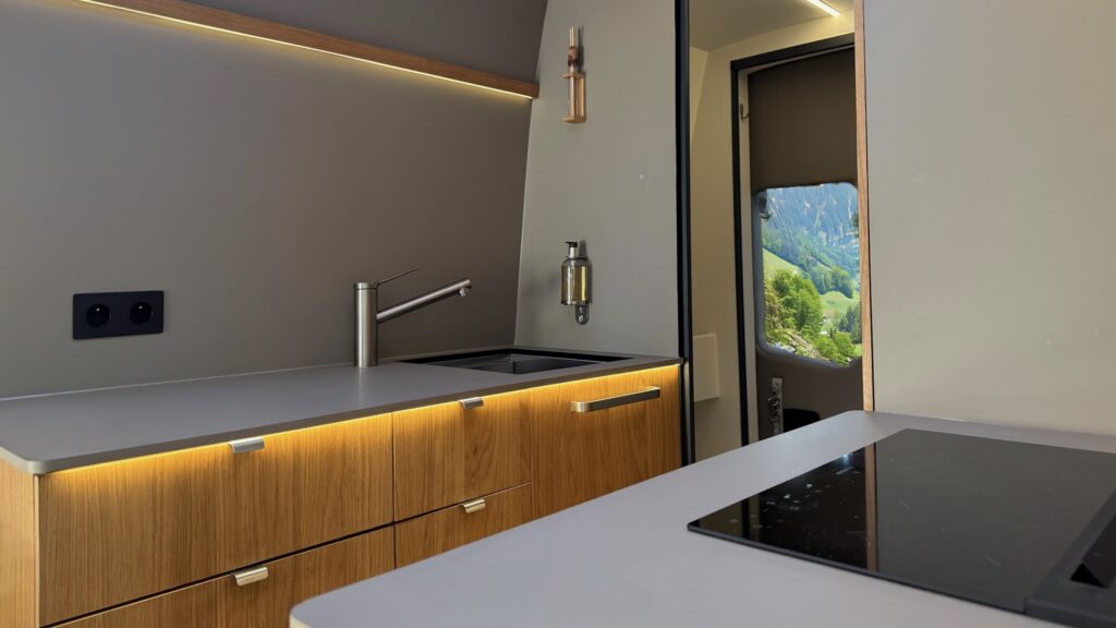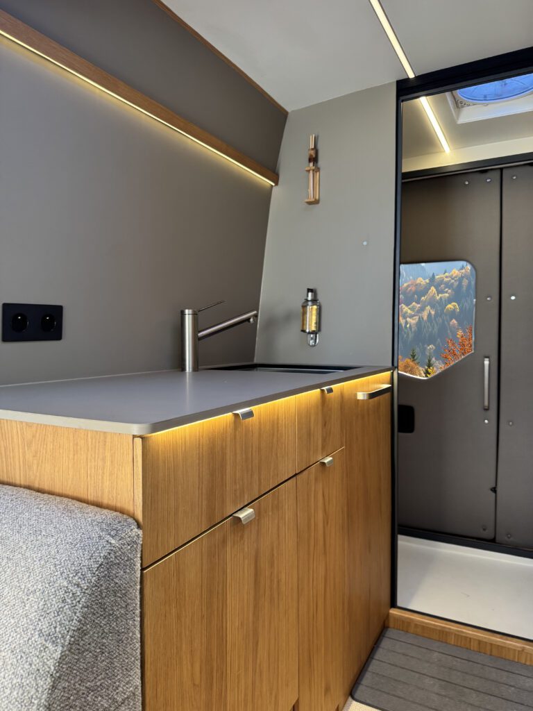 Dans un van aménagé de luxe, les matériaux doivent simplifier l’usage et limiter les contraintes au quotidien. Le FENIX permet d’atteindre cet équilibre tout en maintenant une cohérence esthétique sur l’ensemble de l’intérieur.
