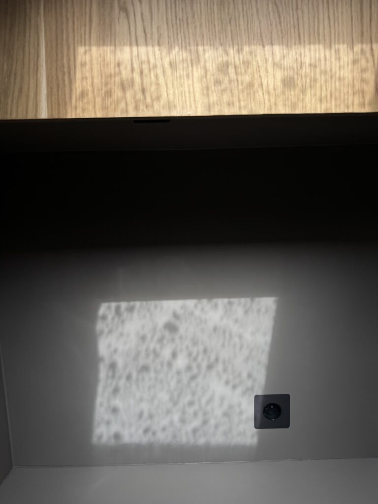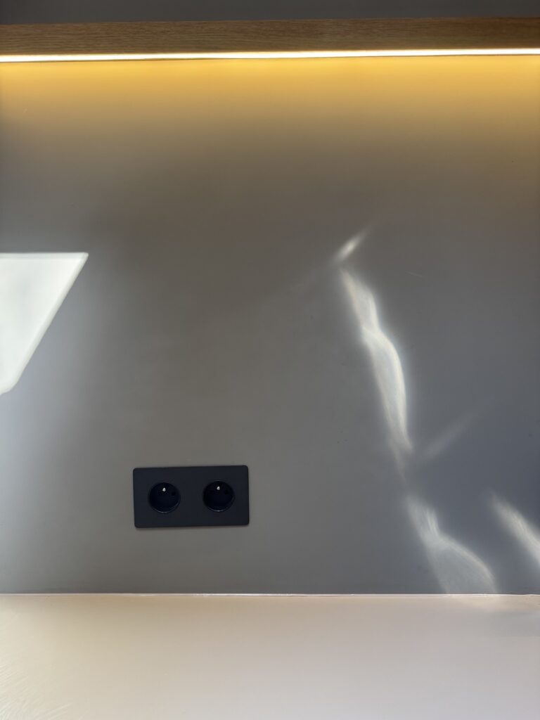 Contrairement aux stratifiés traditionnels, le FENIX absorbe la lumière plutôt que de la réfléchir. Cela réduit les reflets et le bruit visuel, un point important dans un van aménagé où les surfaces sont proches et constamment visibles.